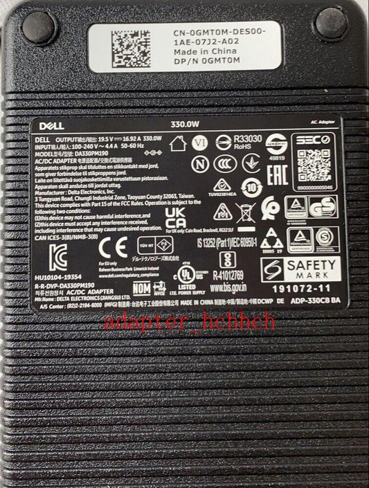 New DELL Slim 330W GaN AC Adapter Charger For Alienware X15 X17 R1 R2 GTX3080 HA330PM201