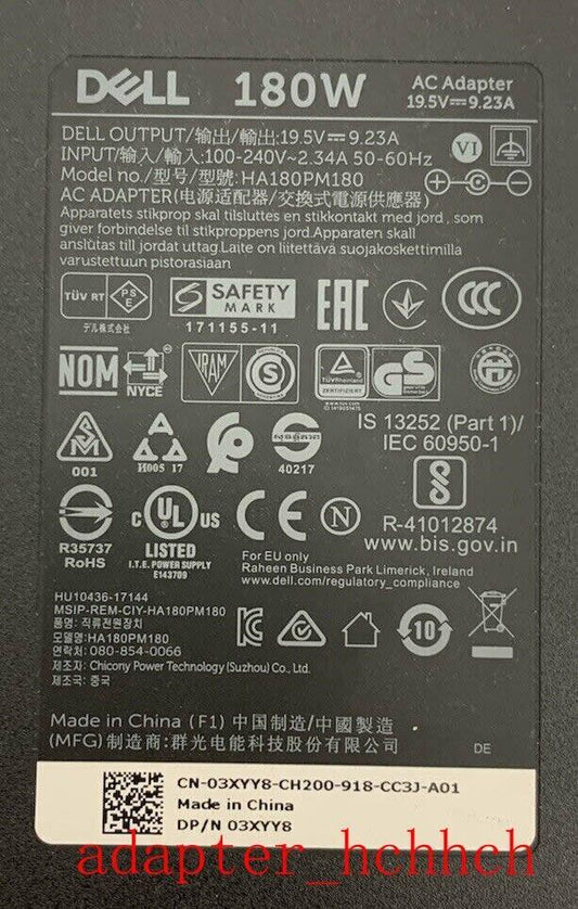 New Original OEM Dell 180W 19.5V Adapter&Cord for Dell G7 7790 HA180PM180 Laptop